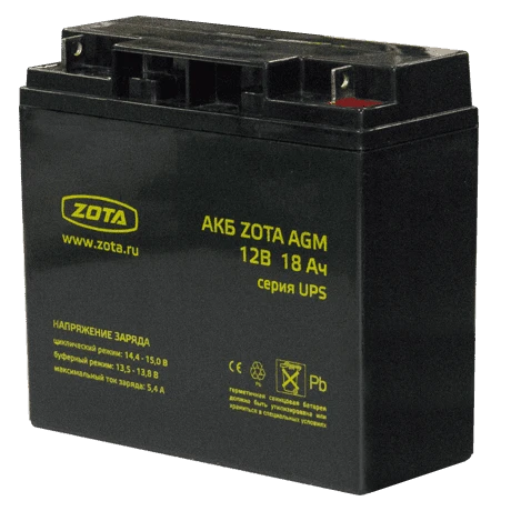 Аккумуляторные батареи ZOTA соответствуют всем международным стандартам. АКБ, изготовленные по технологии AGM (выдерживают примерно 250 – 400 циклов разрядов на 80%) служат до 10 лет в схеме резервного питания.