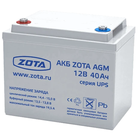 Аккумуляторные батареи ZOTA соответствуют всем международным стандартам. АКБ, изготовленные по технологии AGM (выдерживают примерно 250 – 400 циклов разрядов на 80%) служат до 10 лет в схеме резервного питания.