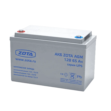 Аккумуляторные батареи ZOTA соответствуют всем международным стандартам. АКБ, изготовленные по технологии AGM (выдерживают примерно 250 – 400 циклов разрядов на 80%) служат до 10 лет в схеме резервного питания.