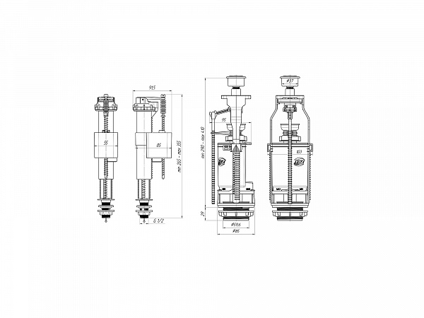 Набор для бачка унитаза АНИ пласт WC8510C. Наливной механизм с нижней подводкой и пластиковой резьбой диаметром 1/2", регулировка по высоте 265-355 мм (стойка механизма поворачивается, устанавливается нужная высота, после чего поворачивается обратно). Сливной механизм хромированная кнопка с одним режимом слива, регулировка по высоте 290-410 мм. Отверстие для кнопки слива в крышке бачка 40 мм, посадочное отверстие сливной арматуры 60 мм. Арматура является важным механизмом, необходимым для правильной работы сливного бачка. Изделие произведено из высококачественного пластика, который обеспечивает длительную эксплуатацию без поломок. Комплектация: сливная арматура, заливная арматура, инструкция, упаковка. Характеристики