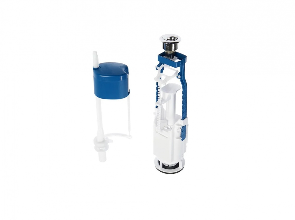 Механизм наполнения предназначен для бачков с нижним подключением. Присоединительный полимерный штуцер 1/2 с наружной резьбой. В сливном механизме предусмотрена возможность регулировки установочной высоты арматуры (от 288 до 403 мм) и настройки объема воды, используемой для смыва. Арматура снабжена трубкой аварийного перелива, которая защищает бачок от переполнения. В случае если не закроется впускной клапан наливного механизма, излишки воды будут стекать в канализацию. Арматура для сливных бачков Уклад АБ 77.57.14.1Н оснащена двухрежимной кнопкой, при нажатии на одну часть происходит смыв малым объемом воды, при нажатии на другую - большим. Что позволяет экономить воду и обеспечивает более эффективное использование. Время наполнения бачка в объеме 6 л - около 2,5 мин. Диаметр отверстия в крышке бачка - 39~44 мм. Ресурс работы - не менее 150 000 циклов «Наполнение/Смыв». Характеристики