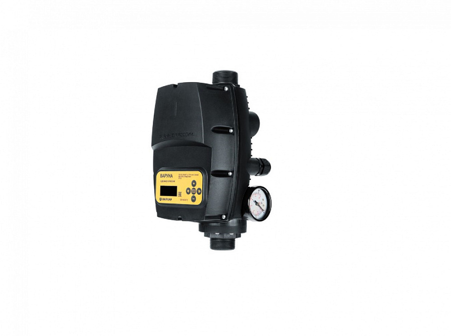 Частотный преобразователь UNIPUMP ВАРУНА — электронный блок, автоматически управляющий функциями остановки и пуска двигателя однофазного насоса мощностью до 2,2 кВт, при максимальной номинальной частоте до 50 Гц. Устройство модулирует частоту (Гц) входного тока двигателя насоса, изменяя скорость его вращения, в зависимости от потребности воды в системе. При этом давление в системе поддерживается на одном, заданном пользователем уровне, а мощность, потребляемая двигателем насоса, пропорциональна величине потока расходуемой воды, что позволяет существенно экономить электроэнергию при постоянно изменяющемся водопотреблении в течение суток. Параметры электросети — ~ 170…250 В, 50 Гц Максимальная мощность двигателя насоса – 2200 Вт Максимальный ток двигателя насоса — 18 А (среднеквадратичное значение) Максимально допустимое давление — 950 кПа (9,5 бар) Рабочий диапазон температур воды — +1…+35 ?С Рабочая температура окружающей среды — +1…+35 ?С, при относительной влажности не более 75% Максимальная теоретическая с Характеристики