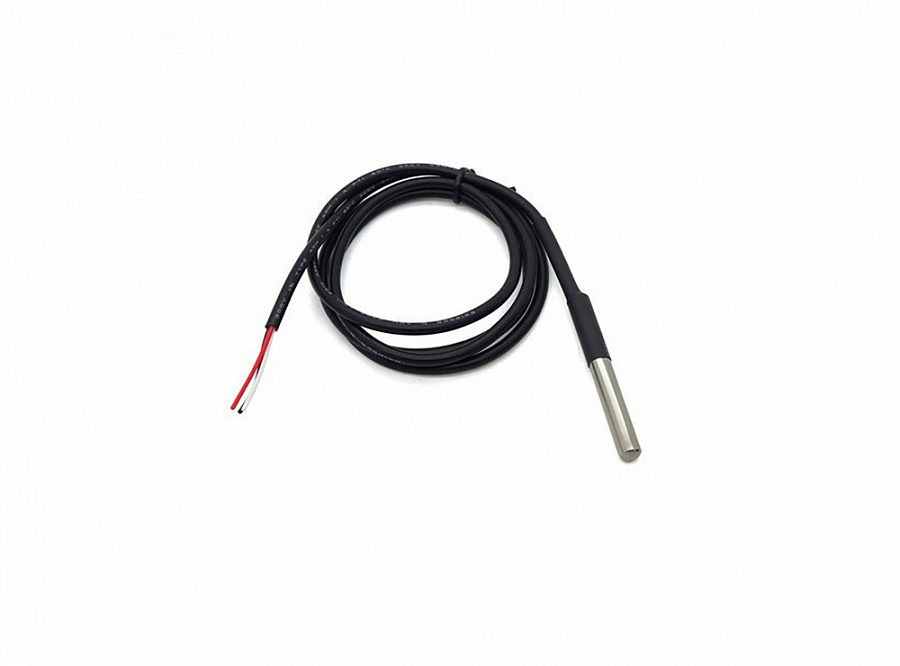 Датчик температуры в колбе может монтироваться накладным способом, либо в гильзу. Применяется для измерения температуры теплоносителя, воды в бойлерах ГВС, стяжки теплого пола. Датчик: DS18B20. Длина кабеля: 1 м. Диапазон рабочих температур: от -40 °C до +110 °C. Провода: красный (VCC), желтый (DATA), черный (GND) Датчики температуры подключаются в шлейф. Для коммутации необходимо использовать кабель "витая-пара" UTP или FTP категории не ниже 5е.