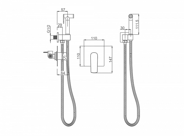 Гигиенический душ со смесителем представляет собой удобный альтернативный вариант стандартному биде. Шланг обладает достаточной длиной 120 см что вполне достаточно для комфортного использования. Лейка для гигиенического душа хорошо держится в руке и обеспечивает комфорт всех проводимых манипуляций с использованием биде для унитаза. Душ гигиенический со смесителем настраивается как смеситель. Имеется нажимное переключение на душ и керамический картридж диаметром 30 мм. Присоединительный размер - G 1/2. Защита от обратного потока и ограничение температуры отсутствуют. Комплектация: смеситель, внутренняя часть, лейка, шланг, инструкция Характеристики
