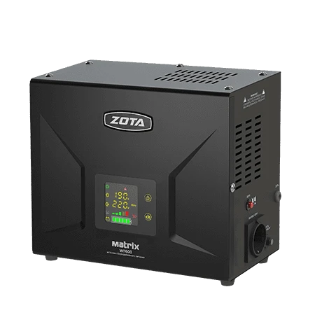 ZOTA Matrix WT - инверторный преобразователь постоянного тока в переменный. В одном корпусе совмещены функции источника бесперебойного питания, стабилизатора напряжения и зарядного устройства АКБ.