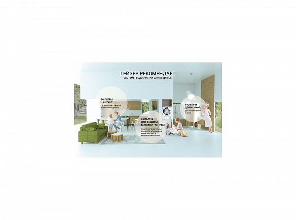 Фильтрация от в зависимости от установленного картриджа от механических примесей, жёсткости воды, хлора, хлорорганики, железа, бактерий, вирусов и т.д.