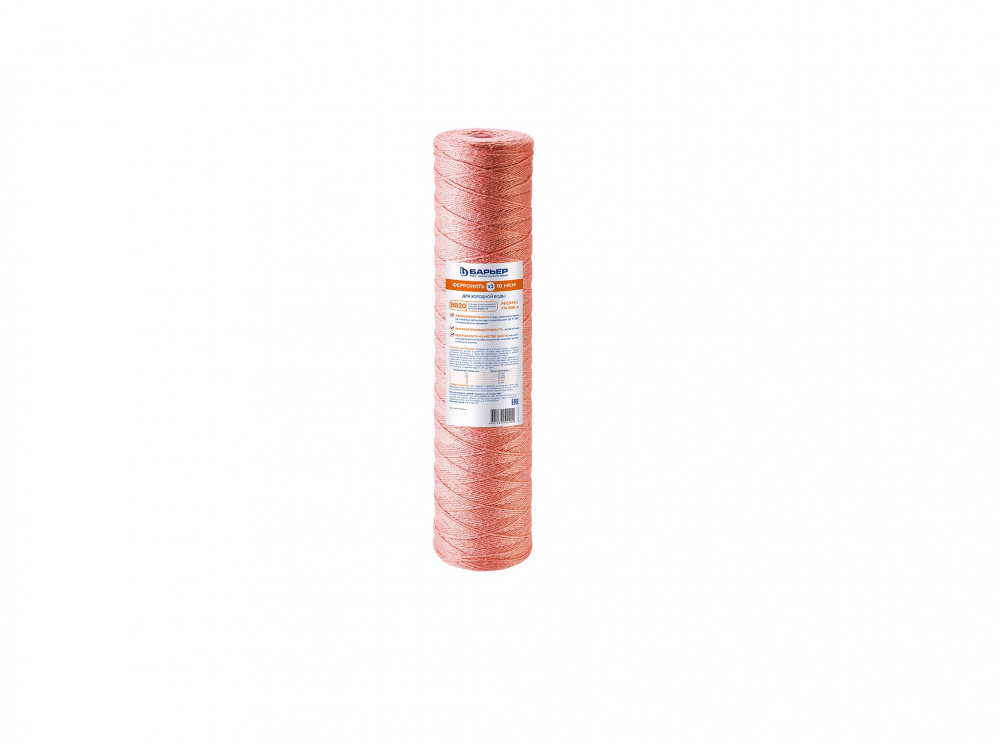 Картридж БАРЬЕР «Ферронить х2» эффективно удаляет растворенное и нерастворенное железо в концентрации до 3 ПДК, а также справляется с тяжелыми металлами. Задерживает механические загрязнения размером более 10 мкм. Сменный картридж для фильтров стандарта Big Blue 20”. За счет увеличенных размеров имеет большой эксплуатационный ресурс – 537 000 л. Рекомендован для водопроводной воды из центральных источников водоснабжения с высоким содержанием растворенного железа. Подходит к любым проточным фильтрам стандарта Big Blue"20. Допустимо использование только в холодной воде от +5 до +35 градусов, производительность до 40 литров в минуту.
