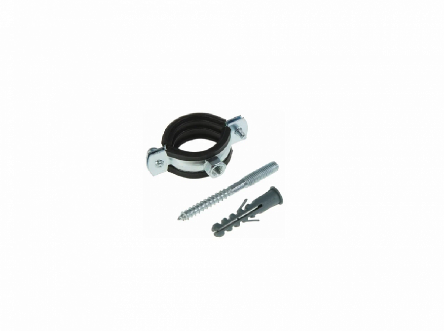 Кронштейн для труб стальной с резиновым уплотнением. Комплект: хомут для труб с наружним диаметром 32-36 мм, шпилька-шуруп М8х70, дюбель пластиковый Характеристики