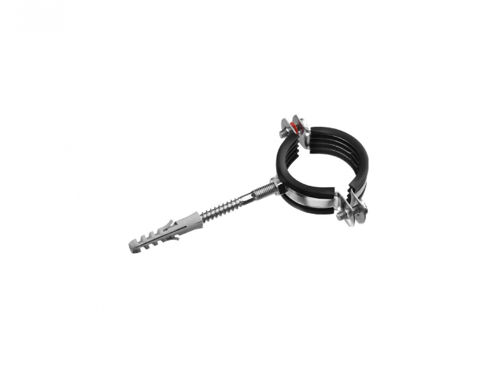 Кронштейн для труб стальной с резиновым уплотнением. Комплект: хомут для труб с наружним диаметром 59-65 мм, шпилька-шуруп М8х80, дюбель пластиковый Характеристики