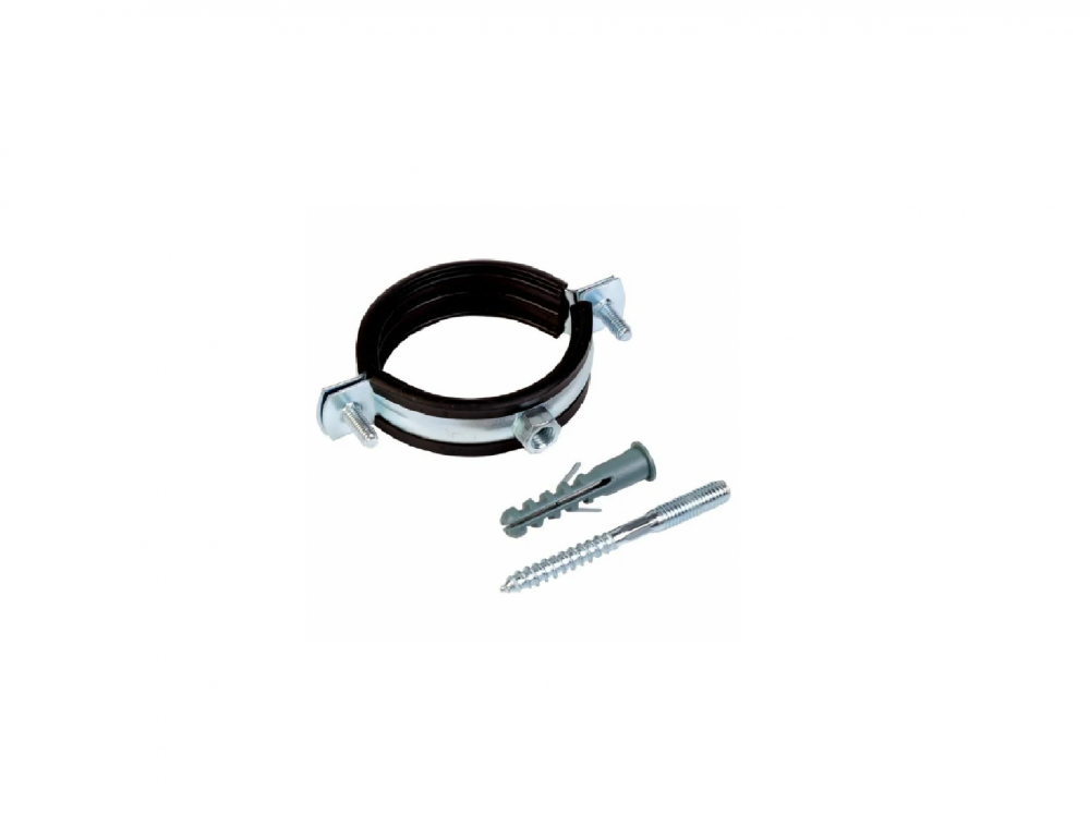 Кронштейн для труб стальной с резиновым уплотнением. Комплект: хомут для труб с наружним диаметром 60-64 мм, шпилька-шуруп М8х80, дюбель пластиковый Характеристики