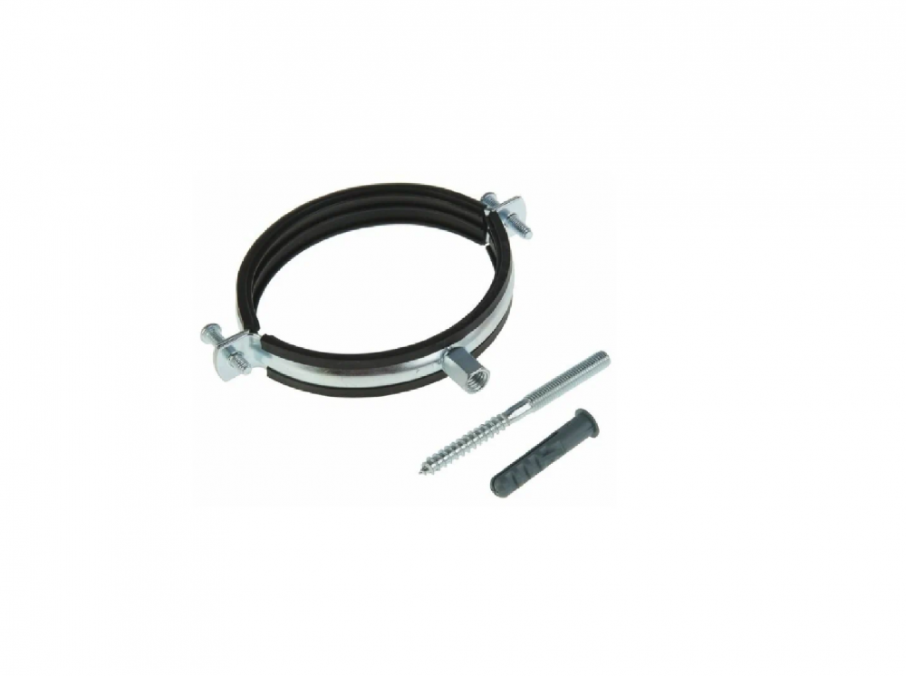 Кронштейн для труб стальной с резиновым уплотнением. Комплект: хомут для труб с наружним диаметром 107-115 мм, шпилька-шуруп М8х80, дюбель пластиковый Характеристики