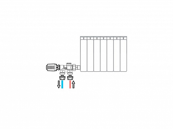 При помощи узла нижнего подключения Herz VTA 40 возможно подключить радиатор через одно нижнее отверстие.