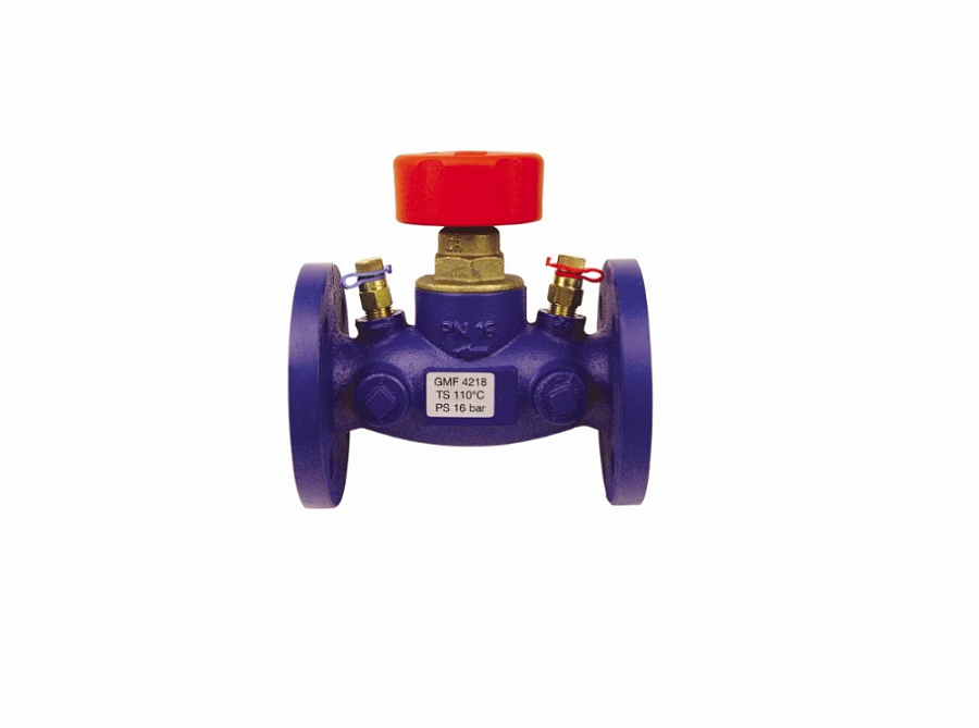 Ручной балансировочный клапан Herz Штремакс GMF. Прямой шпиндель, с измерительными ниппелями. Корпус из чугуна , фланцевое исполнение. Для гидравлической регулировки в системах отопления или охлаждения, а также настройки стояков, теплообменников, магистральных трубопроводов. С возможностью преднастройки. Цифровой указатель предварительной настройки сбоку на маховике. Под маховиком шпиндель для запоминания предварительной настройки. Монтаж вентиля на на трубопроводе согласно стрелке и указаниям в инструкции. Аналог клапанов от Danfoss MSV F и MSV F2 Характеристики