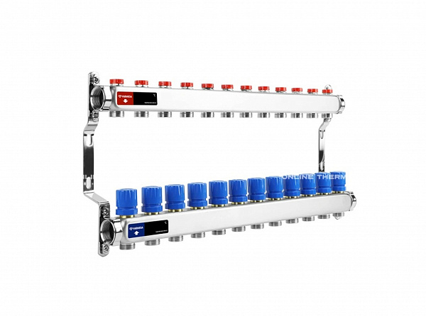 Коллекторная группа Varmega из нержавеющей стали 1" на 12 контуров без расходомеров
