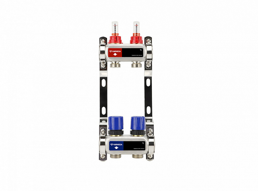 Коллекторная группа Varmega из нержавеющей стали 1" на 2 контура с расходомерами