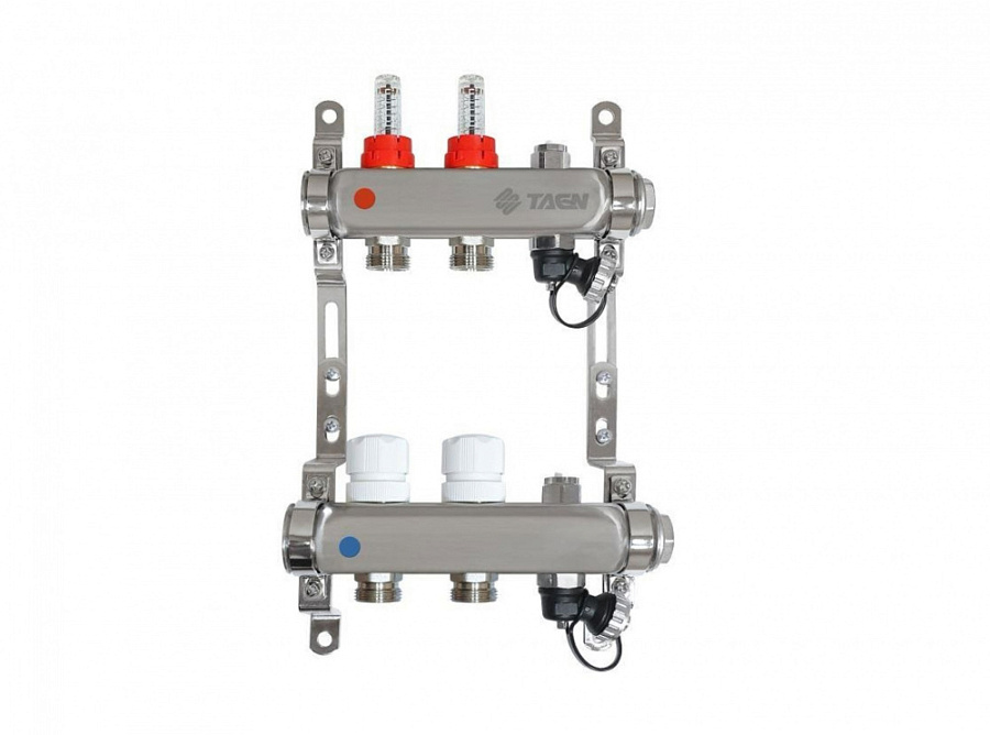 Коллекторная группа TAEN из нержавеющей стали 1" на 2 контура с расходомерами и ручным воздухоотводчиком
