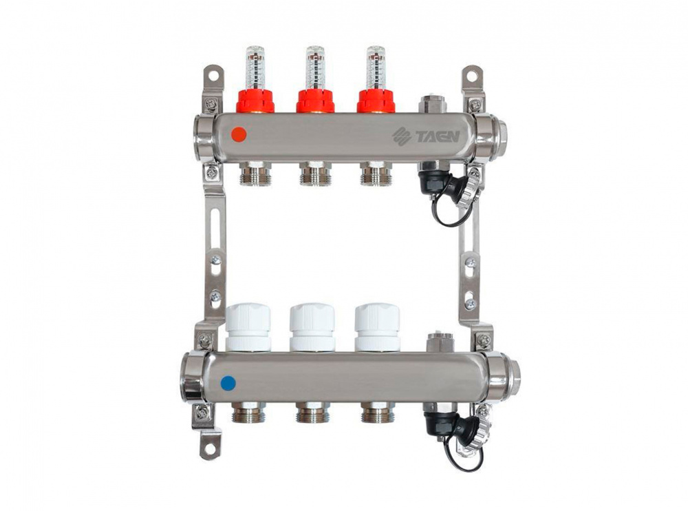 Коллекторная группа TAEN из нержавеющей стали 1" на 3 контура с расходомерами и ручным воздухоотводчиком