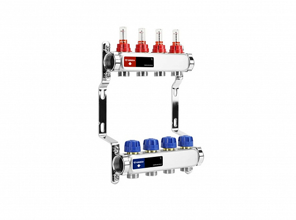Коллекторная группа Varmega из нержавеющей стали 1" на 4 контура с расходомерами