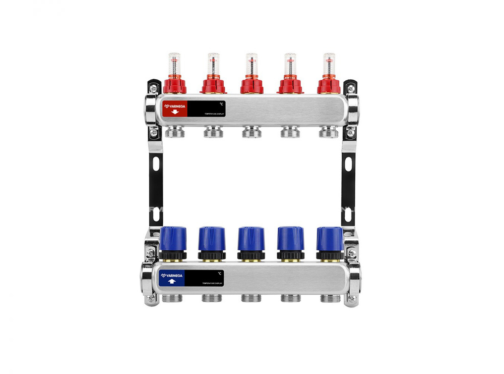 Коллекторные группы предварительной сборки из нержавеющей стали с расходомерами марки Varmega предназначены для распределения и регулирования потоков теплоносителя в низкотемпературных системах отопления (напольное отопление). Оснащены расходомерами на подающем коллекторе и термостатическими вентилями с размером M30x1,5 (с возможностью установки термоэлектрических приводов) на обратном коллекторе. Каждый коллектор подвергается в заводских условиях проверке на функционирование и герметичность уплотнений. Характеристики