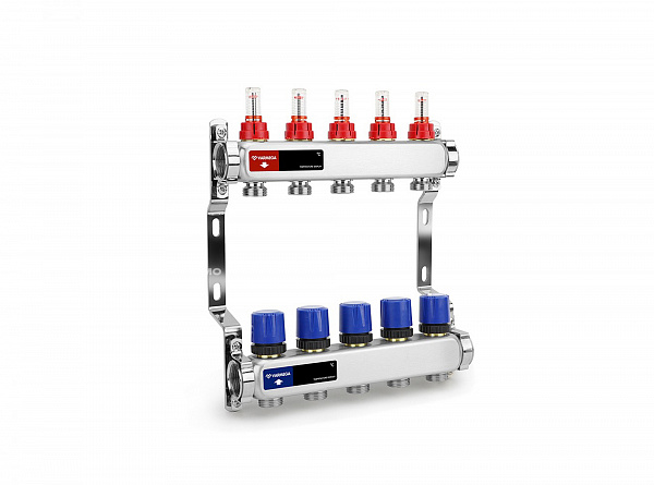 Коллекторная группа Varmega из нержавеющей стали 1" на 5 контуров с расходомерами