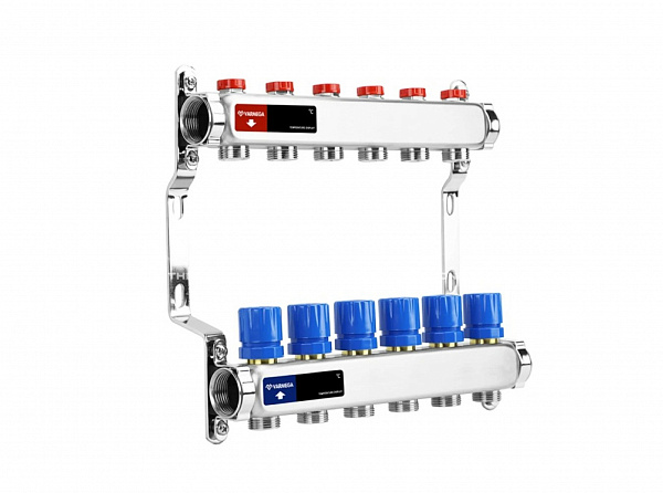 Коллекторная группа Varmega из нержавеющей стали 1" на 6 контуров без расходомеров