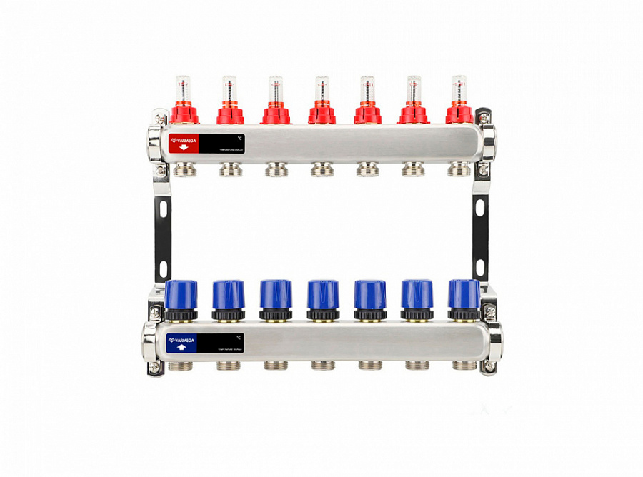 Коллекторная группа Varmega из нержавеющей стали 1" на 7 контуров с расходомерами и автоматическим воздухоотводчиком
