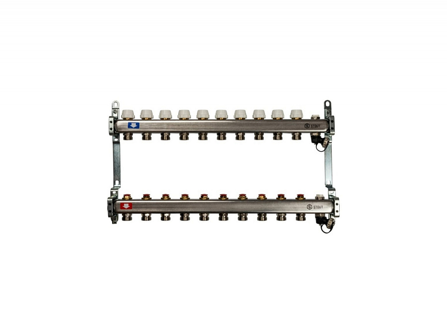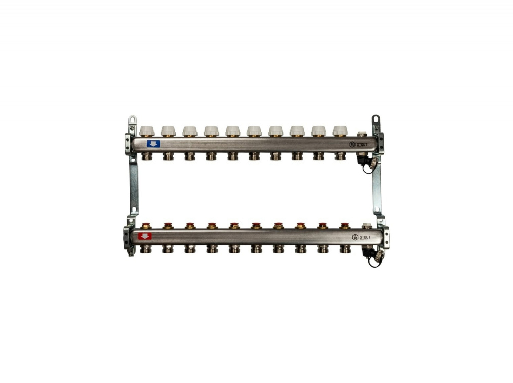 Коллекторная группа STOUT из нержавеющей стали 1" на 10 контуров без расходомеров