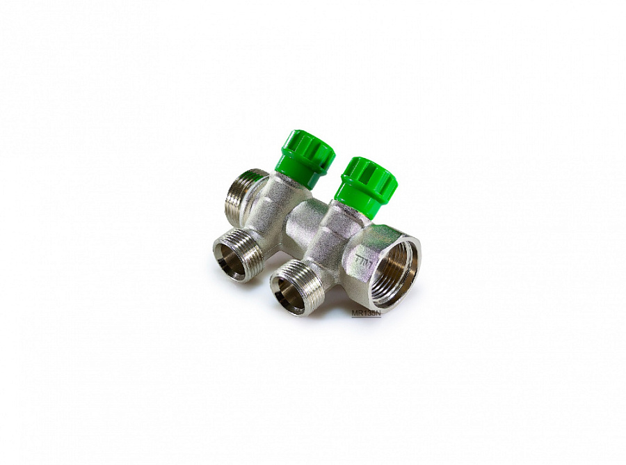 Распределительный коллектор 1" (Ду25) с наружной и внутренней резьбой для лучевых систем водоснабжения. Имеет 2 отвода под 45° с присоединительным размером 3/4" евроконус. Регулировочные вентили (кран-буксы) позволяют отключить или регулировать проток. Так же может применяться для распределения и балансировки потоков жидкостей в контурах теплого пола, радиаторного отопления. Температура перекачиваемой жидкости до 110 °С, давление - до 10 бар. Характеристики
