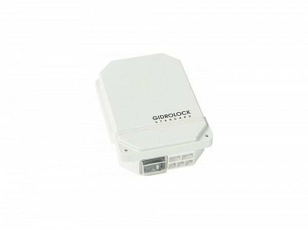 При попадании влаги на контакты проводного датчика WSP, блок управления Standard проинформирует о возникшей аварии звуковым сигналом и одновременно даст команду шаровым кранам G-Lock с электроприводом Gidrolock перекрыть подачу воды в помещение.