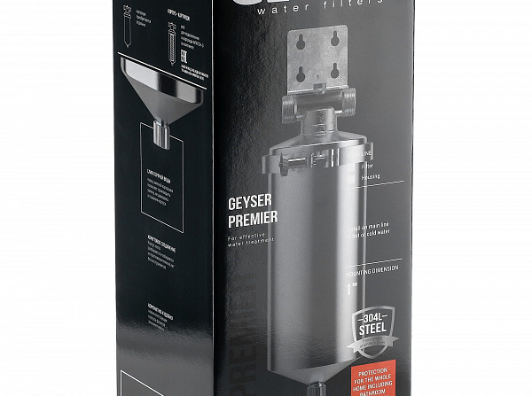 Гейзер-Премьер 10BB 1" устанавливается на вход в систему горячего или холодного водоснабжения. Корпус фильтра изготовлен из высококачественной нержавеющей стали марки 304L, устойчивой к возникновению коррозии, что гарантирует высокую надежность и многолетнюю работу фильтра.