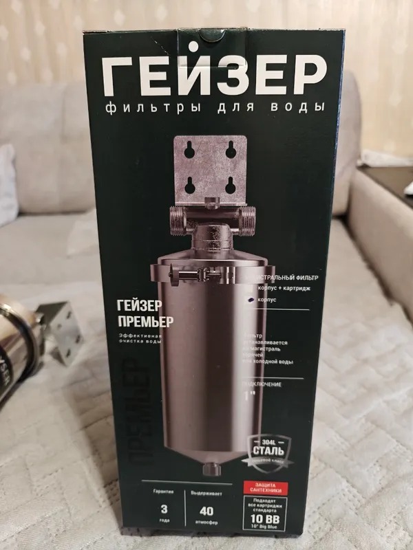 Гейзер-Премьер 10BB 1" легко подключается к магистрали и легко обслуживается. Хомутовое крепление крышки позволяет легко извлечь картридж без использования дополнительных ключей. Также для замены картриджа предусмотрено удобное отверстие для слива воды. Используется с картриджами стандарта Big Blue 10".