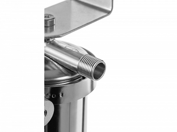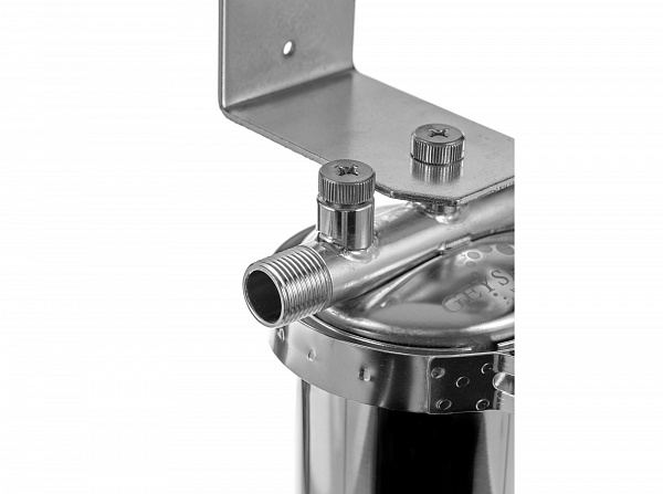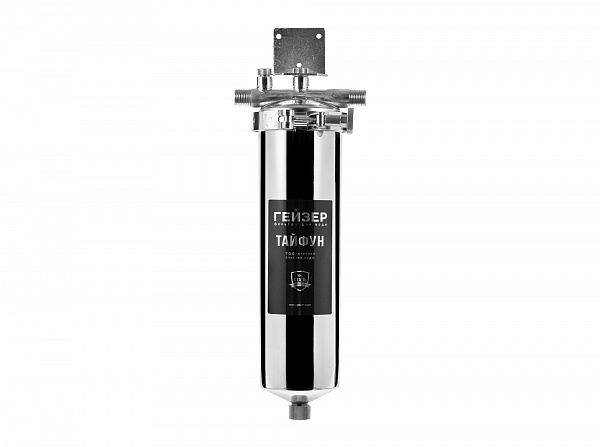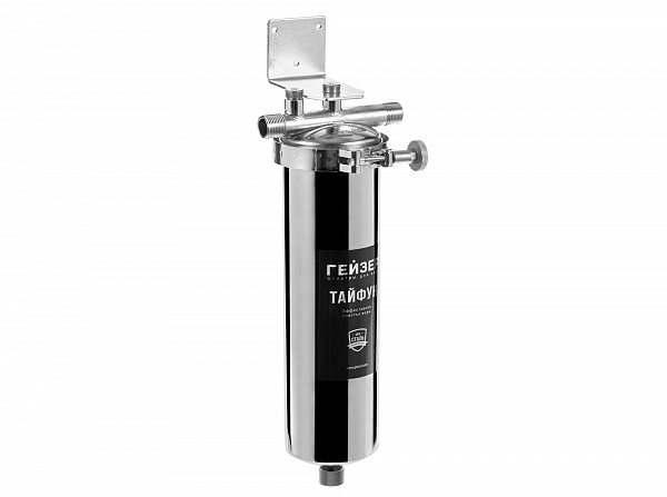 Корпус и крышка фильтра Гейзер Тайфун 10SL 1/2" изготовлены из высококачественной нержавеющей стали марки 304L с металлической скобой. Корпус рассчитан на работу под давлением и установку на входе в систему горячего или холодного водоснабжения. Внизу корпуса находится клапан слива воды для удобной замены картриджа. Используется с картриджами стандарта Slim Line 10".