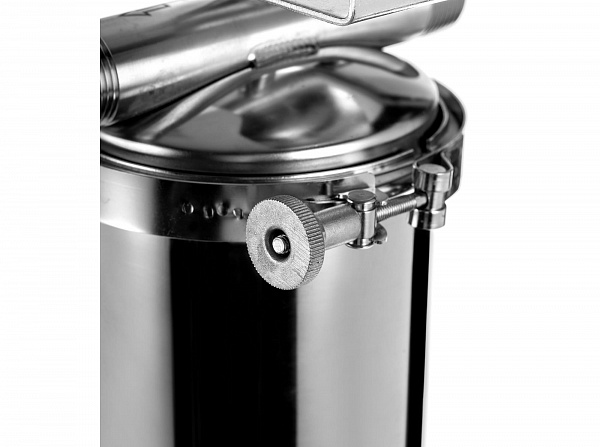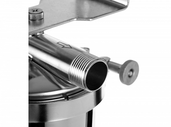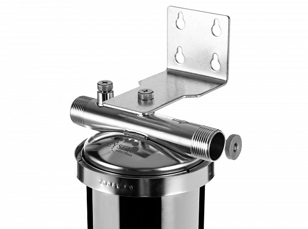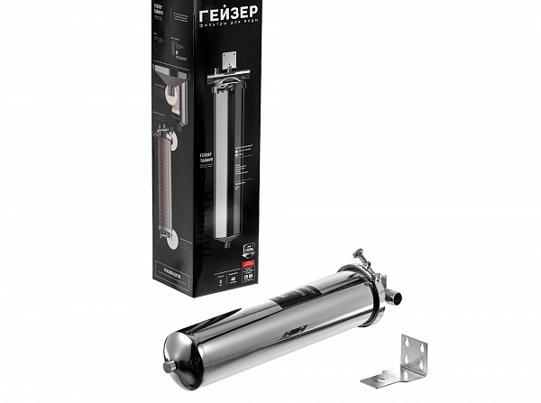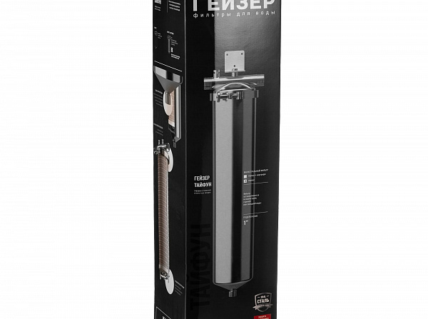 Корпус и крышка фильтра Гейзер Тайфун 20BB изготовлены из высококачественной нержавеющей стали марки 304L с металлической скобой. Корпус рассчитан на работу под давлением и установку на входе в систему горячего или холодного водоснабжения. Внизу корпуса находится клапан слива воды для удобной замены картриджа. Используется с картриджами стандарта Big Blue 20".