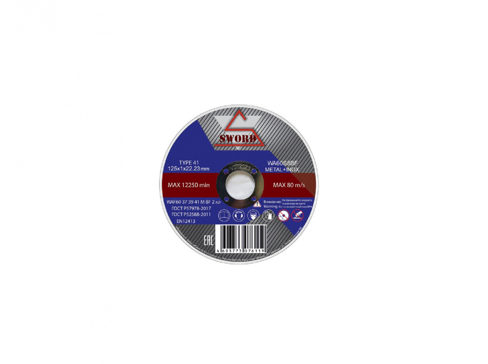 Круг отрезной 125x1.0x22 A 60 S BF 80 (металл+нерж.)(SWORD)