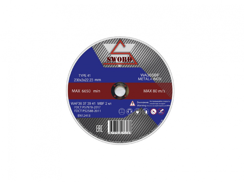 Круг отрезной 230x2.0x22 A 36 S BF 80 (металл+нерж.)(SWORD)