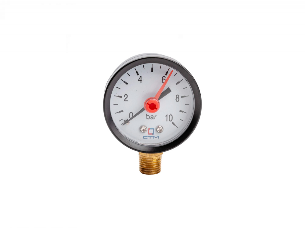 Манометр СТМ радиального подключения 1/4", измерение до 10 бар предназначен для индикации давления на бытовых системах отопления и водоснабжения. Материал корпуса – металл, стекло. Материал чувствительного элемента – медь. Диапазон температуры окружающей среды -10 +60° С. Диапазон температуры рабочей среды до 120° С. Характеристики
