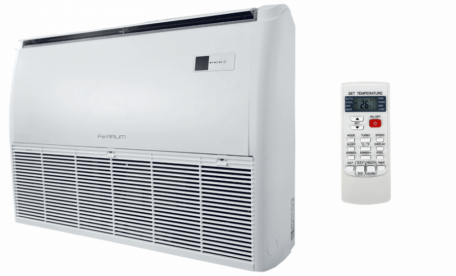 Инверторные сплит-системы напольно-потолочного типа имеют широкий температурный диапазон работы и высокий класс энергоэффективности. Благодаря функции «4D Air Flow» охлажденный воздух равномерно распределяется по всей площади помещения, а «Турборежим» позволяет кондиционеру максимально быстро выйти на заданную температуру в помещении. Кондиционеры FeRRUM имеют трехслойное антикоррозийное покрытие «Blue Fin», которое улучшает эффективность теплообмена, а также увеличивает срок службы кондиционера. Благодаря установленным датчикам контроля температуры высокой точности функция персонального комфорта «I FEEL» обеспечивает максимальный комфорт в той части помещения, где находится пульт.