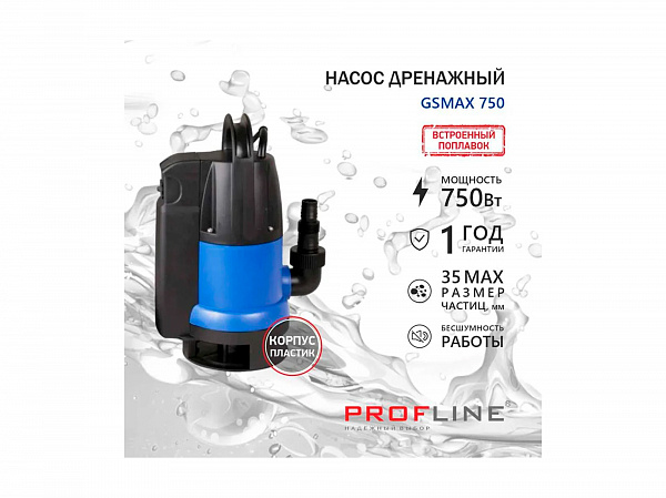 Насос дренажный PROFLINE GSMAX 750 (пласт.корп., 750 Вт, Hmax 8м, Qmax 12500л/ч, 35мм)