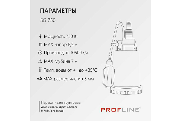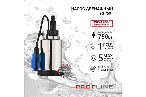 Насос дренажный PROFLINE SG 750 (до 5 мм, корус нержавеющая сталь, 750 Вт, Hmax-8,5 м, Qmax-10500 л/ч)
