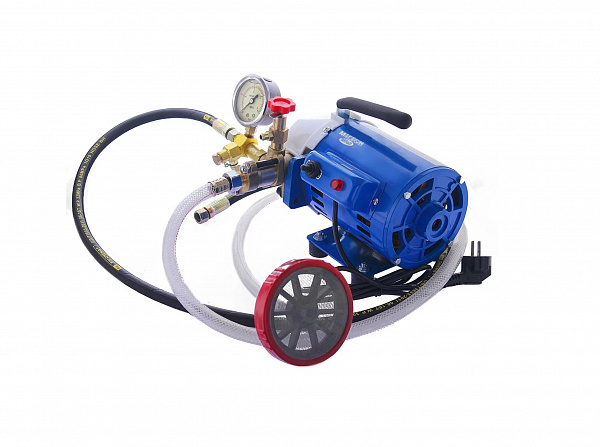 Электрический опрессовочный насос для гидравлических испытаний емкостей, трубопроводов и т.д. Наличие редукционного клапана подволяет точно установить и поддерживать испытательное давление до 60 бар. Состоит из бака , электронасоса, нагнетательного трубопровода (подающего шланга) с регулятором давления , предохранительного клапана давления, всасывающего шланга с фильтром и дренажного шланга. Допускается кратковременная работа с теплоносителями (обязательна промывка после использования) Мощность 250 Вт, напряжение ~ 220 +- 10%. Производительность 3 л/мин, вес 9,8 кг. Размеры в собранном виде 400 х 300 х 290 мм. Характеристики