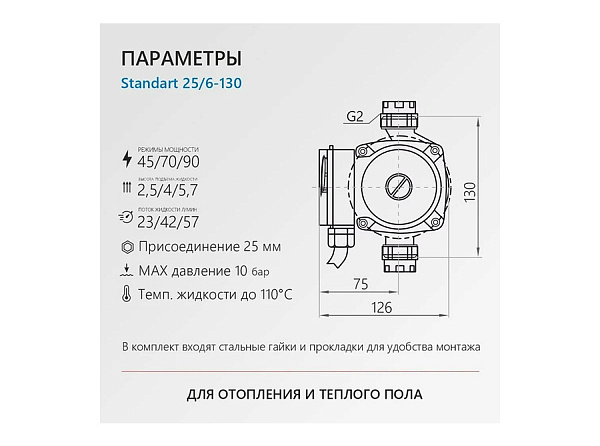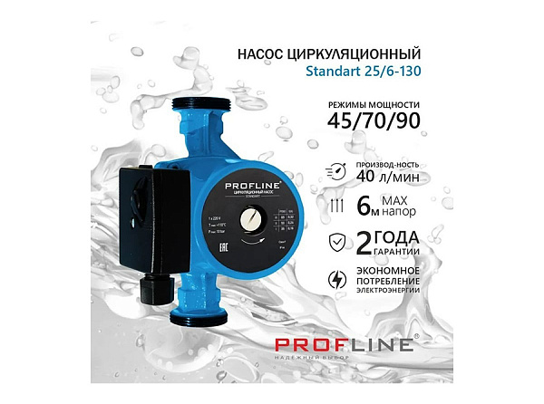 Насос циркуляционный PROFLINE Standart 25/6-130 (гайки, б/кабеля)