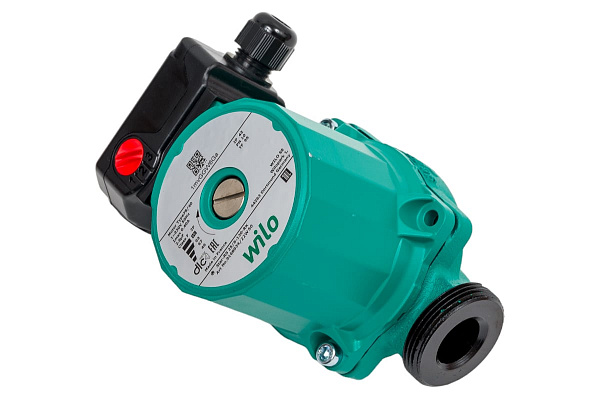 Циркуляционный насос Wilo Star-RS с мокрым ротором, с тремя ступенями частоты вращения, с ручным регулированием числа оборотов и мотором, устойчивым к току блокировки. Монтажная длина 130 мм, через дополнительные соединения длина увеличивается до 180 мм.