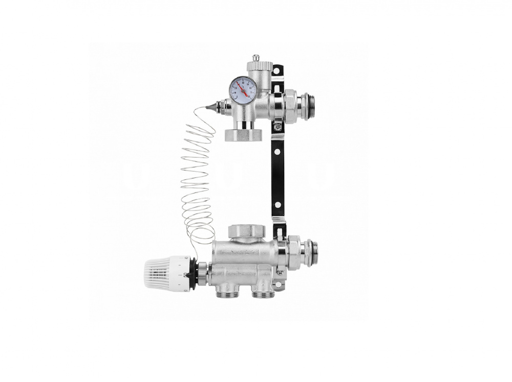 В большинстве случаев насосно-смесительный узел предназначен для организации водяных теплых полов. Позволяет организовать вторичный (низкотемпературный) контур теплых полов, отделив его от первичного (высокотемпературного) контура радиаторного отопления. Термостатическая головка накручивающаяся на клапан имеет диапазон регулировки от +20 °C до +70 °C. При снижении температуры теплоносителя ниже установленного значения клапан открывается и подмешивает горячий теплоноситель из первичного контура, остывший теплоноситель из вторичного контура сбрасывается в "обратку" первичного. По достижении установленного значения клапан закрывается, насос обеспечивает циркуляцию теплоносителя по системе труб теплого пола. Varmega VM15011 может быть установлен как в левую так и в правую сторону, имеет 5 позиционный регулируемый "байпас", обратный клапан, автоматический воздухоотводчик и указатель температуры подающего теплоносителя. Раздвижной кронштейн позволяет использовать насосы с монтажной длинной 130 мм и 180 мм, накидные Характеристики