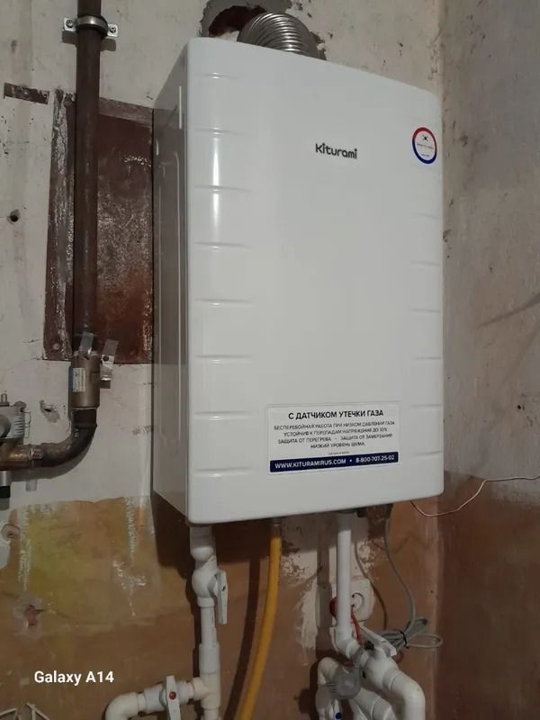 Двухконтурный котел со встроенным датчиком утечки газа, двухуровневым теплообменником из нержавеющей стали и выносным пультом управления, для отопления и горячего водоснабжения загородного дома, дачи, коттеджа до 100 м².