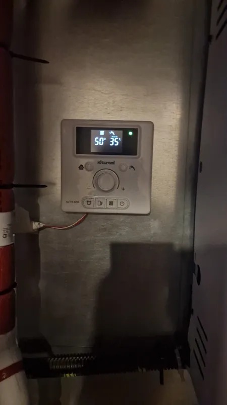 стильный вид, никаких кнопок, крутило на фасаде- только пульт. с обогревом каркасника 100квадрат справляется (правда суровой зимы толком не было). горячая вода нагревается быстро. но есть желание переделать схему с косвенным нагревом, чтобы увеличить напор гвс