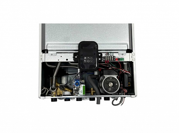 Одноконтурный отопительный газовый котел 24 кВт с возможностью подключить бойлер косвенного нагрева (в котле установлен трехходовой клапан, NTC - датчик бойлера в комплекте). Блок управления, оснащенный системой выявления утечки газа, автоматически прекращает работу котла. Это позволяет предотвратить аварийную ситуацию. Модулируемая (регулируемая) скорость вращения вентилятора обеспечивает оптимальное соотношение газа и воздуха в камере сгорания для экономичного расхода газа и гарантирует стабильную работу при изменении сопротивления в системе дымоудаления из-за ветра. Котел имеет двухуровневый теплообменник - верхний слой из алюминия обеспечивает защиту от конденсата из системы дымоудаления, нижний слой из меди защищает его от перегрева. Это обеспечивает высокую тепло проводимость и долговечную работу котла. Циркуляционный насос с мокрым ротором и напором 7 м компании Grundfos работает практически бесшумно. Инновационный контроль работы вентилятора с помощью датчика Холла, а не прессостата, исключает останов В случае отключения электропитания, перегрева теплообменника, неисправности вентилятора, системы дымоудаления, система безопасности или сейсмической активности автоматика прекращает подачу газа.