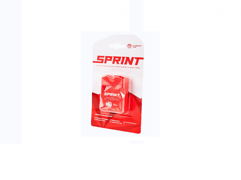 Нить SPRINT 25 м - сантехническая уплотнительная нить для герметизации резьбовых соединений. Имеет плоское сечение, более 280 микронитей и улучшенную пропитку, разработанную Сантехмастер Групп. Подходит для срочного ремонта и монтажа. Применяется для резьб из любого материала. Гермитизация происходит мгновенно. Характеристики