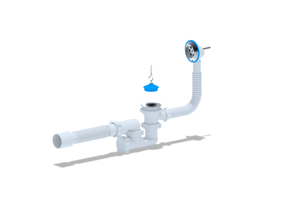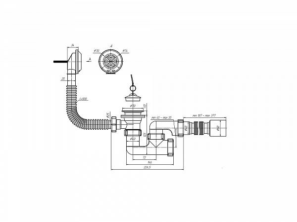 Форма регулируемого сифона позволяет поддерживать хорошую пропускную способность слива сточной воды (24 л/мин) через решетку слива ( Ø70мм при выпуске 1½), выполняя свою главную функцию - формирование гидрозатвора высотой 47-57 мм для отсечения неприятных запахов из канализации. Конструкция позволяет легко, без демонтажа, разобрать и почистить сифон в случае засорения, достать случайно упавшие в слив раковины мелкие ценные вещи.