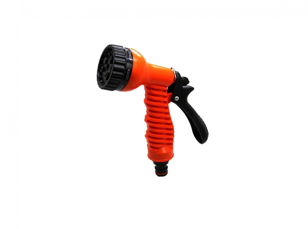 Многофункциональный пластиковый пистолет для поливочных и очистительных работ. Крепится на конце садового шланга. Позволяет визуально отслеживать направление полива и регулировать дозировку воды. Для прекращения подачи воды достаточно отпустить спусковой крючок. Обеспечивает плавную регулировку струи от жесткой точечной до мягкого тумана. Предусмотрены следующие функции полива: душ, разбрызгивание под углом, полная струя, ливень, конус, плоская струя, центральная струя. Характеристики