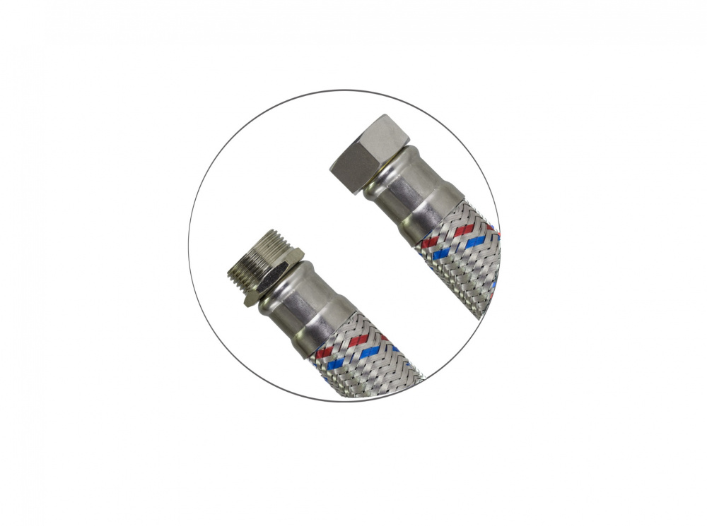 Шланг с накидной гайкой и наружной резьбой диаметром 1" в металлической обмотке длиной 60 см. Используется для подключения насосов, насосных станций, гидроаккумуляторов, расширительных баков и т.д. Рабочее давление до 20 бар. Рабочая температура от 0°C до 95°C. Характеристики